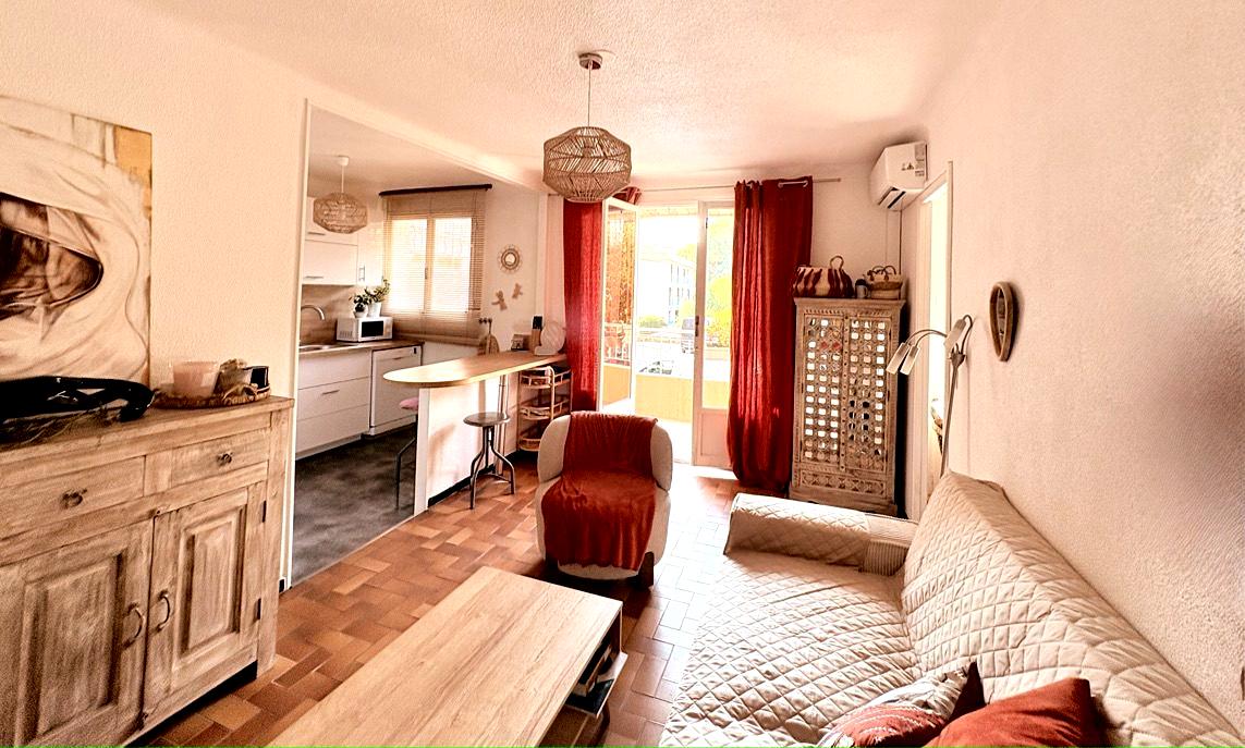 L’entrée, équipée d’un placard à chaussures, s’ouvre sur un séjour spacieux donnant accès à un agréable balcon de 10 m², parfait pour vos moments de détente.La cuisine ouverte, aménagée et entièrement équipée (installation avril 2025), séduit par son design contemporain et sa praticité.