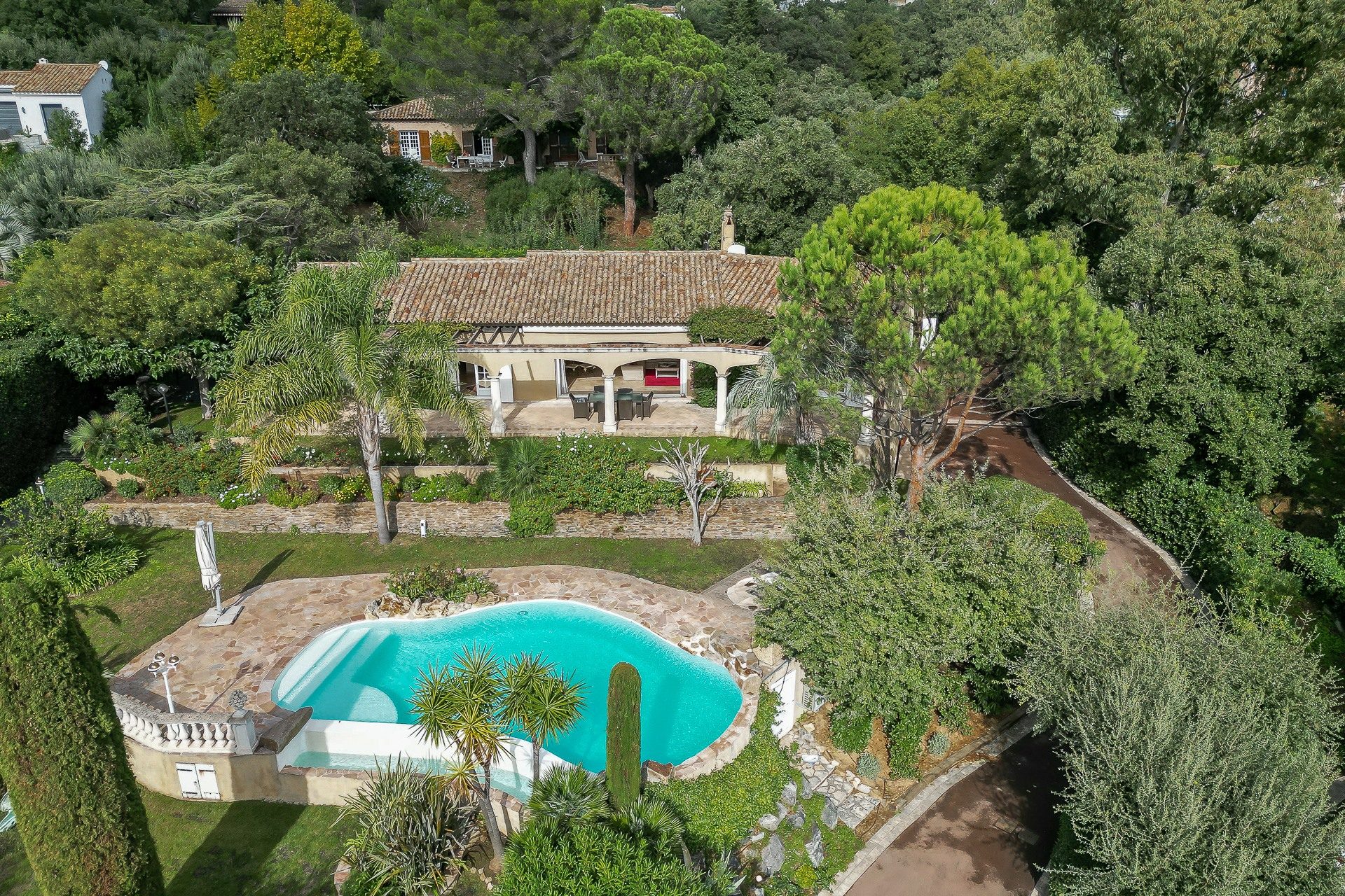 À seulement 12 km de Saint-Tropez, 7 km du port pittoresque de Grimaud, du village Sainte-Maxime, et 80 km de Cannes, cette propriété allie sérénité et proximité de l’effervescence de la Côte d’Azur, faisant de cette villa un lieu idéal pour vivre ou séjourner.